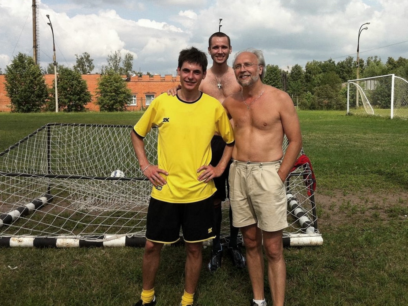 В перерыве матча молодых приемников «нашего дела», полагаю, под ироничные ухмылки ребят и их девушек, я все же не удержался и вышел на поле. Почеканил – а я это здорово умею. Пару раз хлестко и точно ударил по воротам. Чувствую, ухмылки постепенно сошли с лиц, сменившись некоторым удивлением. А тут еще Никита: «Все, дядя Саш, выходите за нас, а то у нас двое ребят уехало!»